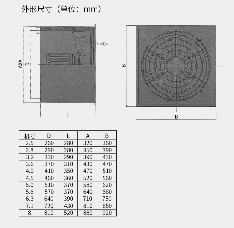 上鼓JVF-AM-600D4壁式外轉(zhuǎn)子軸流排風機 10300m3/h 860W