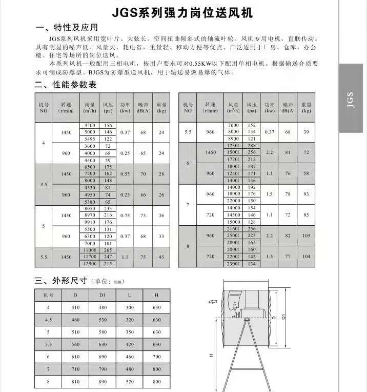 DZ-II--4.5-0.25kw/6P移動(dòng)式軸流排風(fēng)機(jī),風(fēng)量6500-8000m3/h一般配用三相異步電機(jī),按用戶(hù)要求對(duì)0.55KW以下可配用單相異步電機(jī)?筛鶕(jù)輸送氣體介質(zhì)不同要求制成防腐型,防爆型:FDZ為防腐型軸流通風(fēng)機(jī),用于輸送有腐蝕性的氣體;BDZ為防爆型軸流通風(fēng)機(jī),用于輸送易燃易爆的氣體。FBDZ為防腐防爆型軸流通風(fēng)機(jī),用于輸送有腐蝕性且易燃易爆的氣體。還可根據(jù)客戶(hù)的不同要防爆要求做成更高規(guī)格,如BT4,CT4,各種不同防爆等級(jí)。