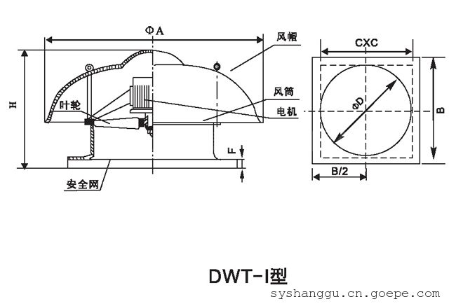 DWT-I-12軸流式屋頂排風(fēng)機(jī) 57000m3/h 196pa 5.5kw上鼓